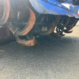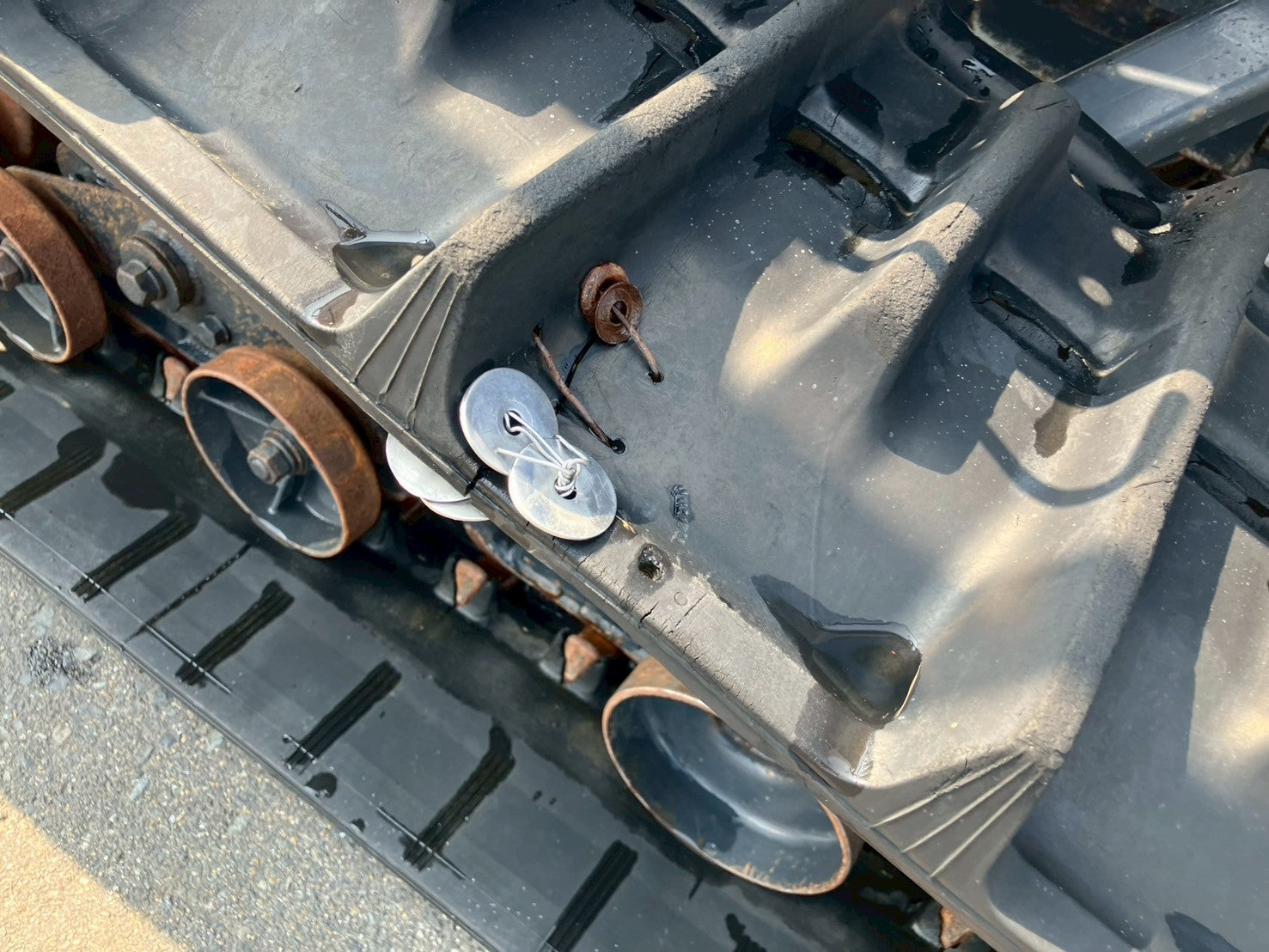 Puissance 18cvAttelage 3État BonBatterie bonne, pas d'alimentation électrique, pneu avant droit fissuré, masque avant fissuré, rouillé, chenilles partiellement déchirées et renforcées avec du fil de fer.