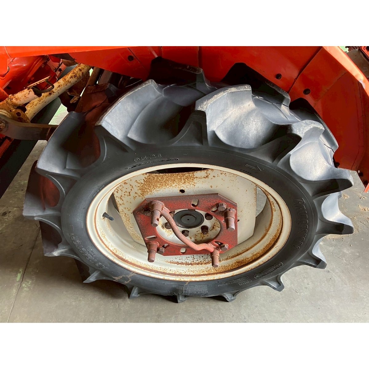 Avec rotary, batterie bonne, pas de direction assistée, roue arrière manquante sur le rotary, rouille sur le couvercle du capot, rouille sur le rotary.