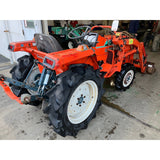 Pas de batterie, avec PS, fuite d'eau par la pompe à eau qui clique, avec chargeur frontal et godet, chargeur frontal et rotatif fonctionnant lentement (peut-être manque d'huile), l'embrayage semble coller à faible vitesse.